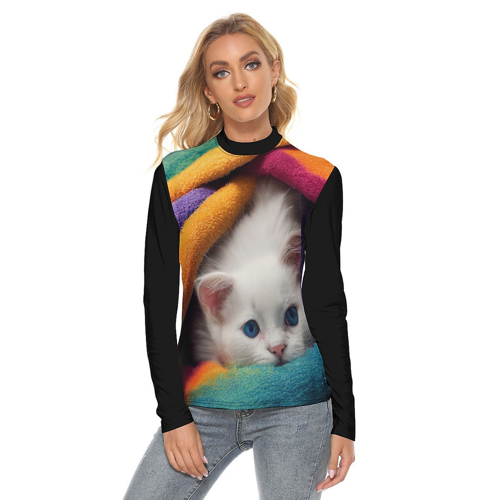 Kitty Blue Eyes Women's Stretchable Turtleneck Top