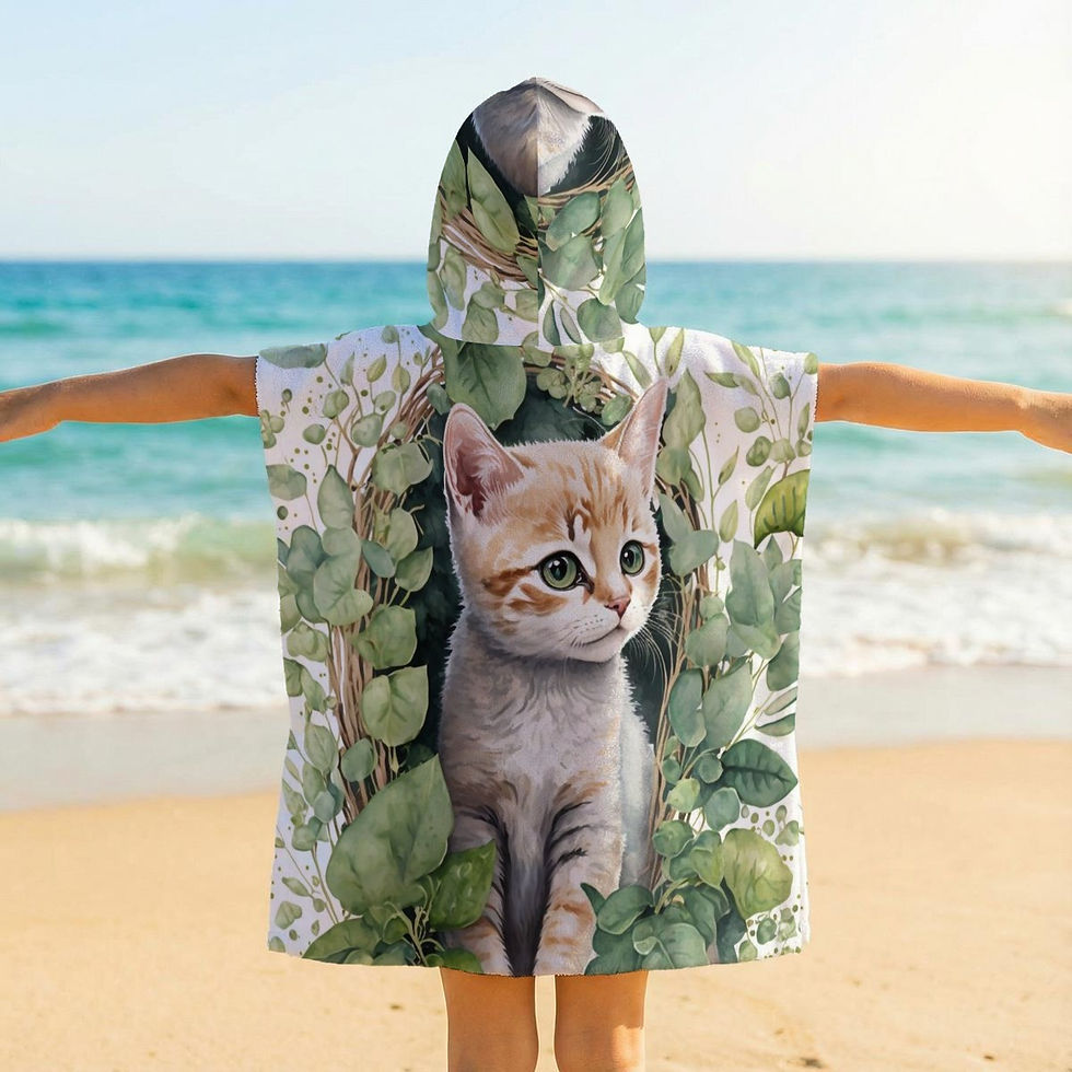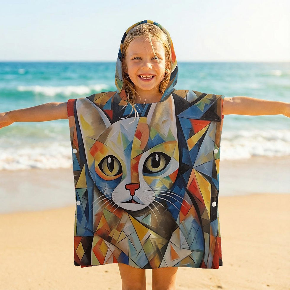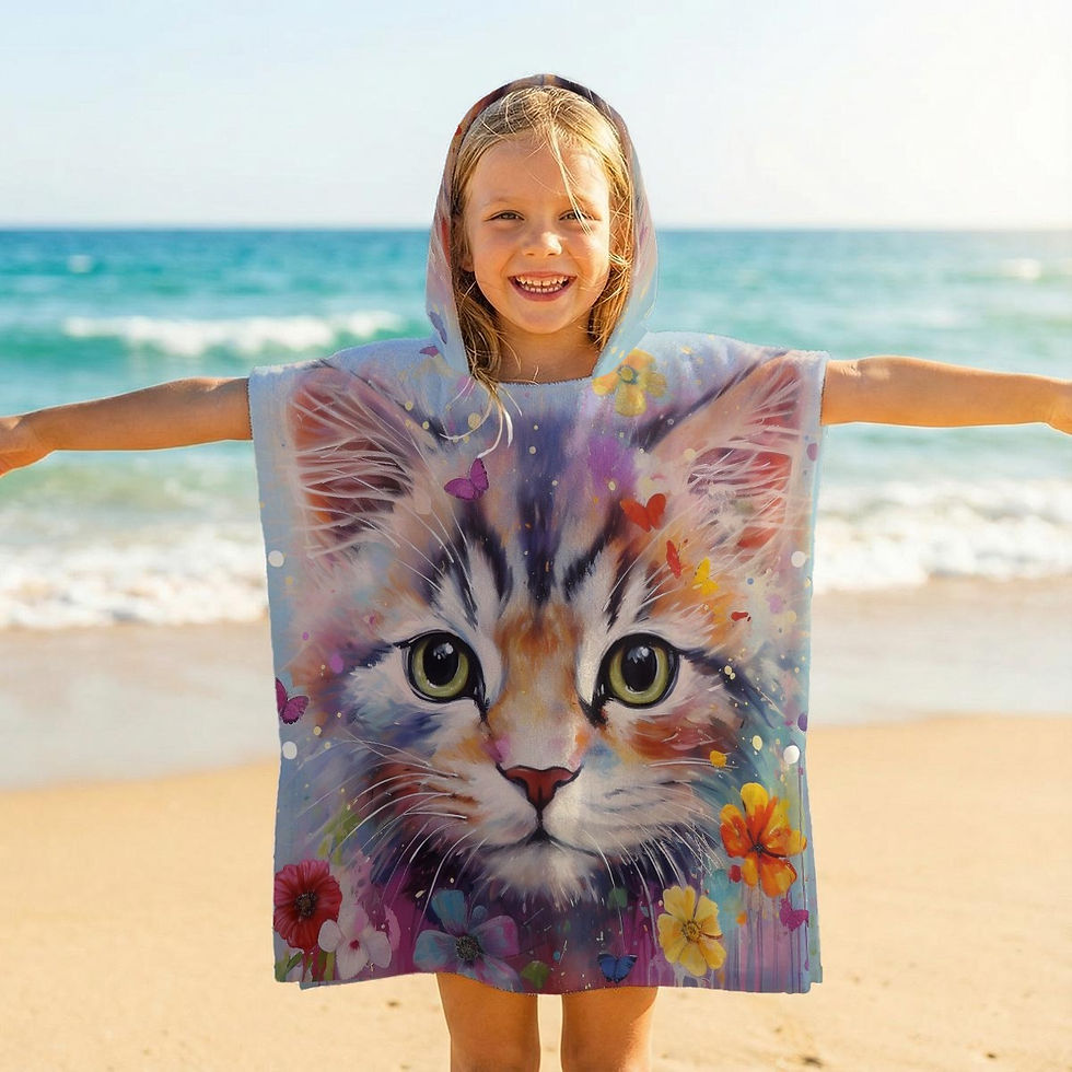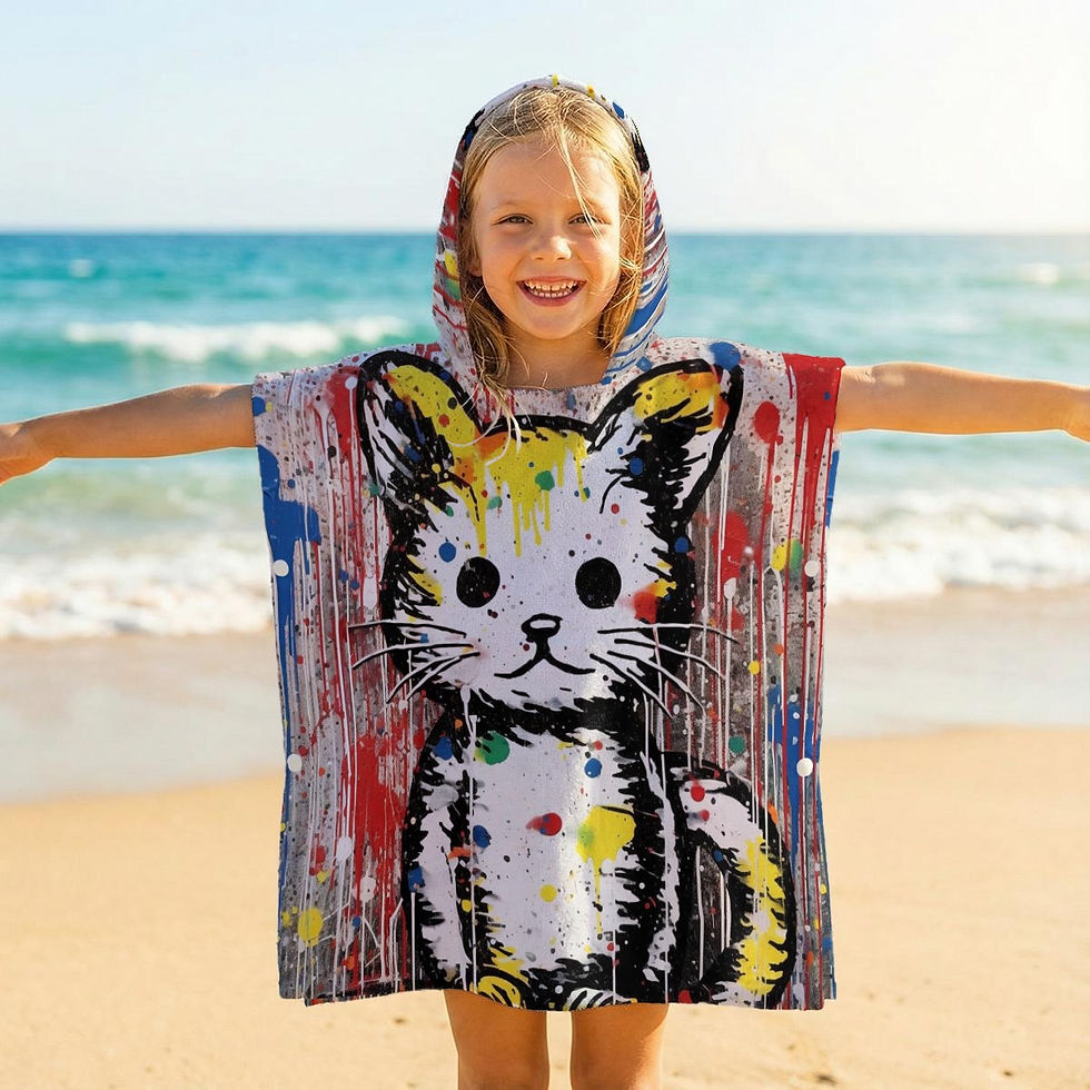 Cutie Cat Print Kid's Hooded Towel Poncho