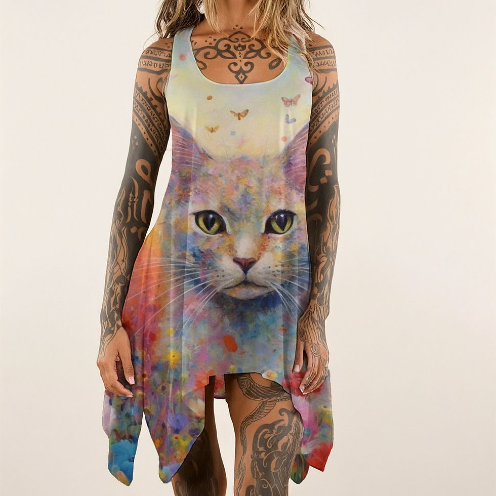 Artsy Cat Print Women's Sleeveless Tank Dress
